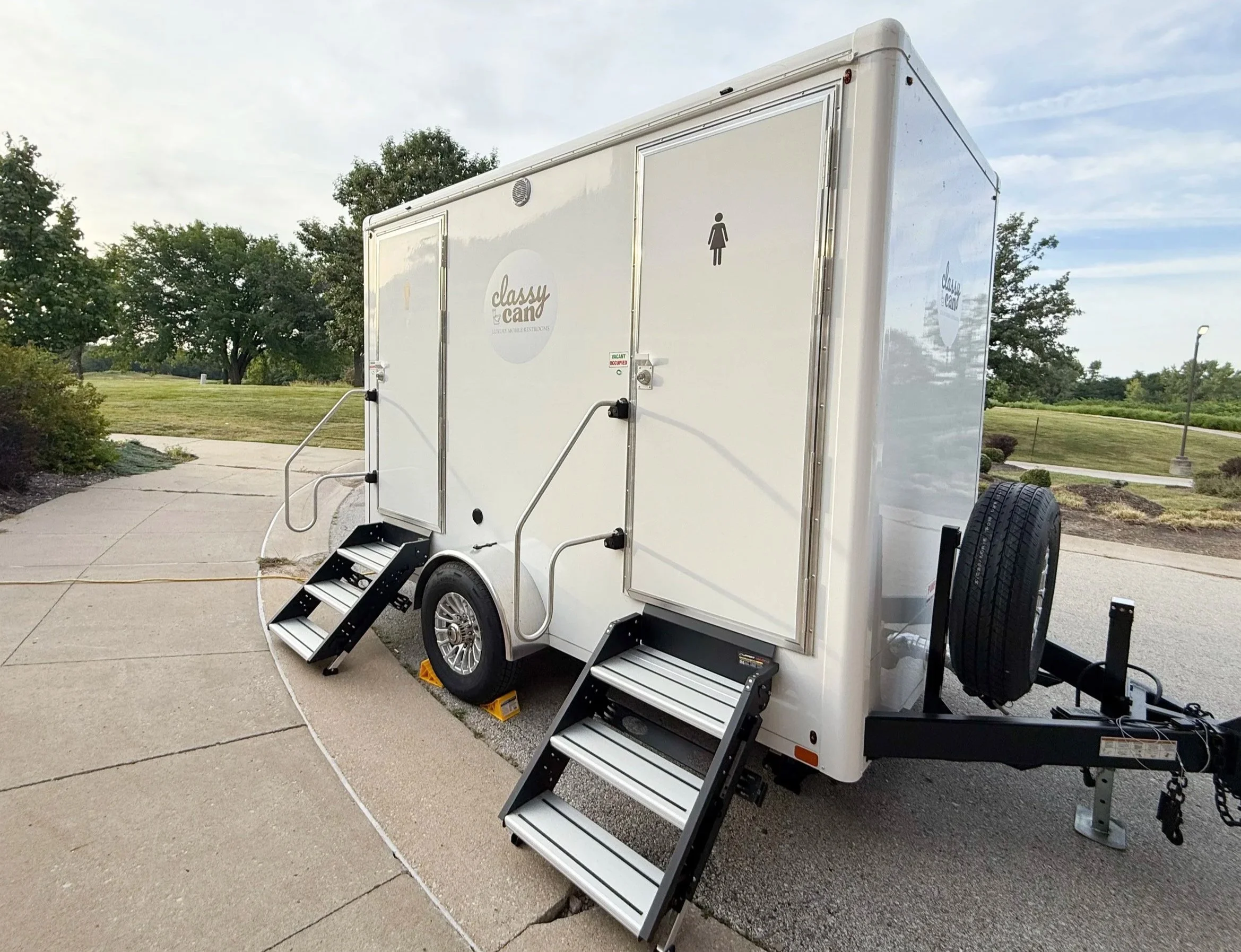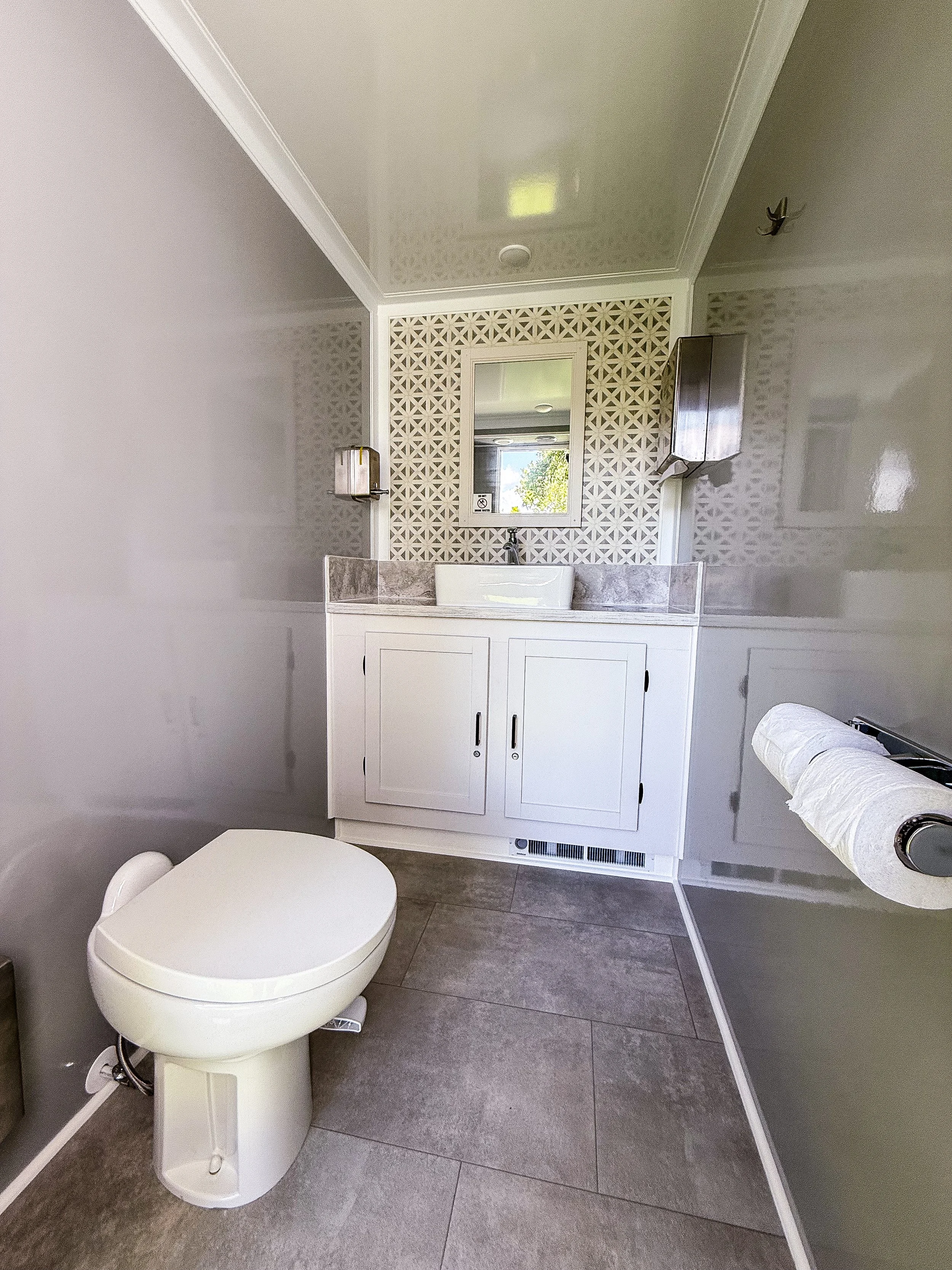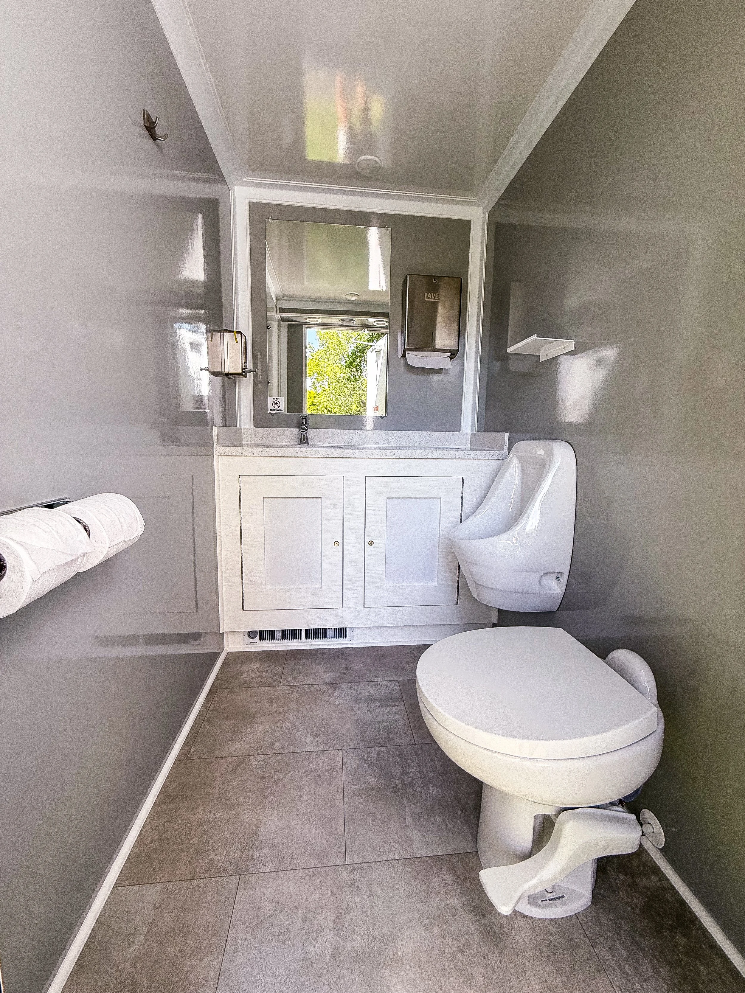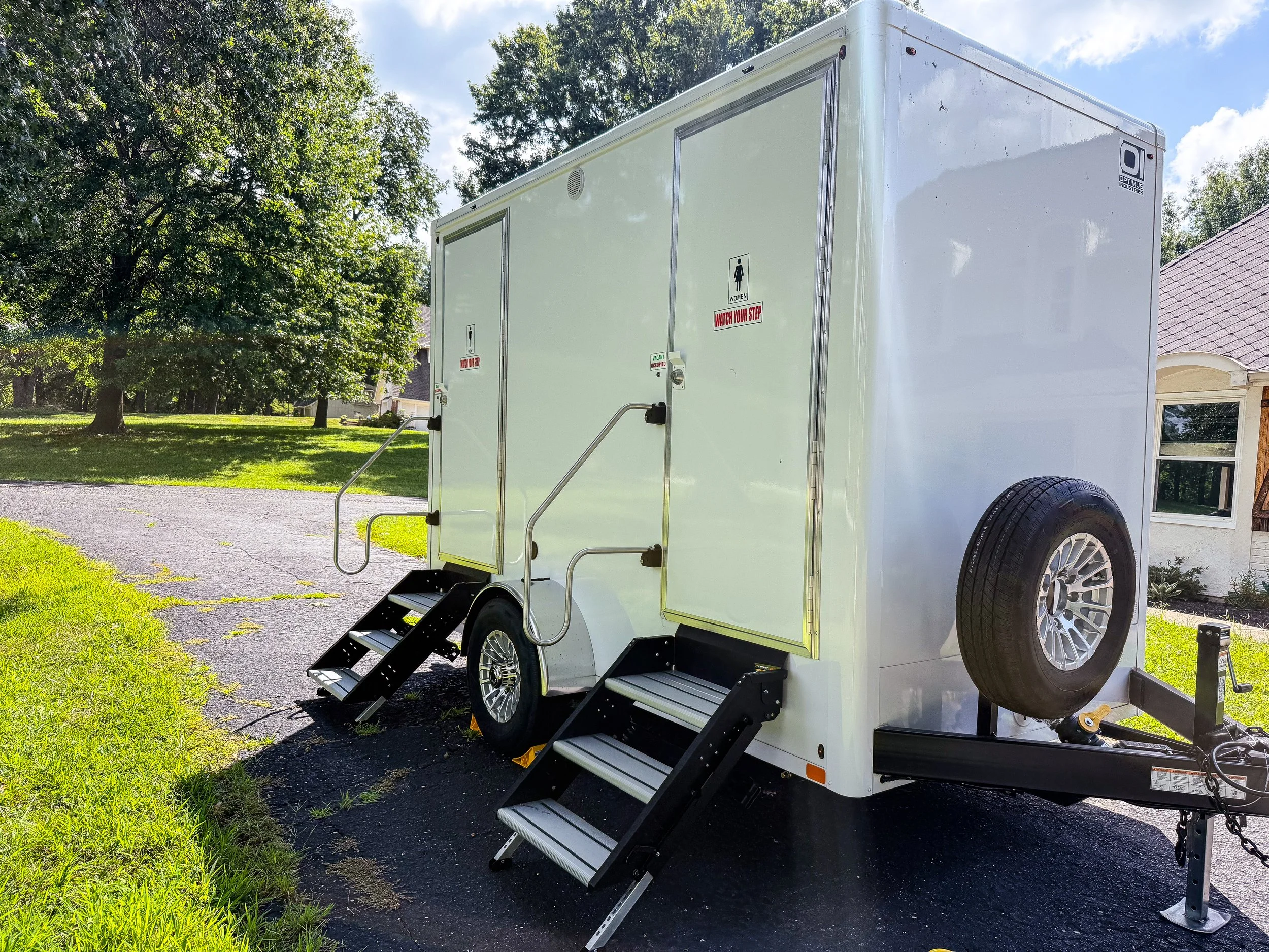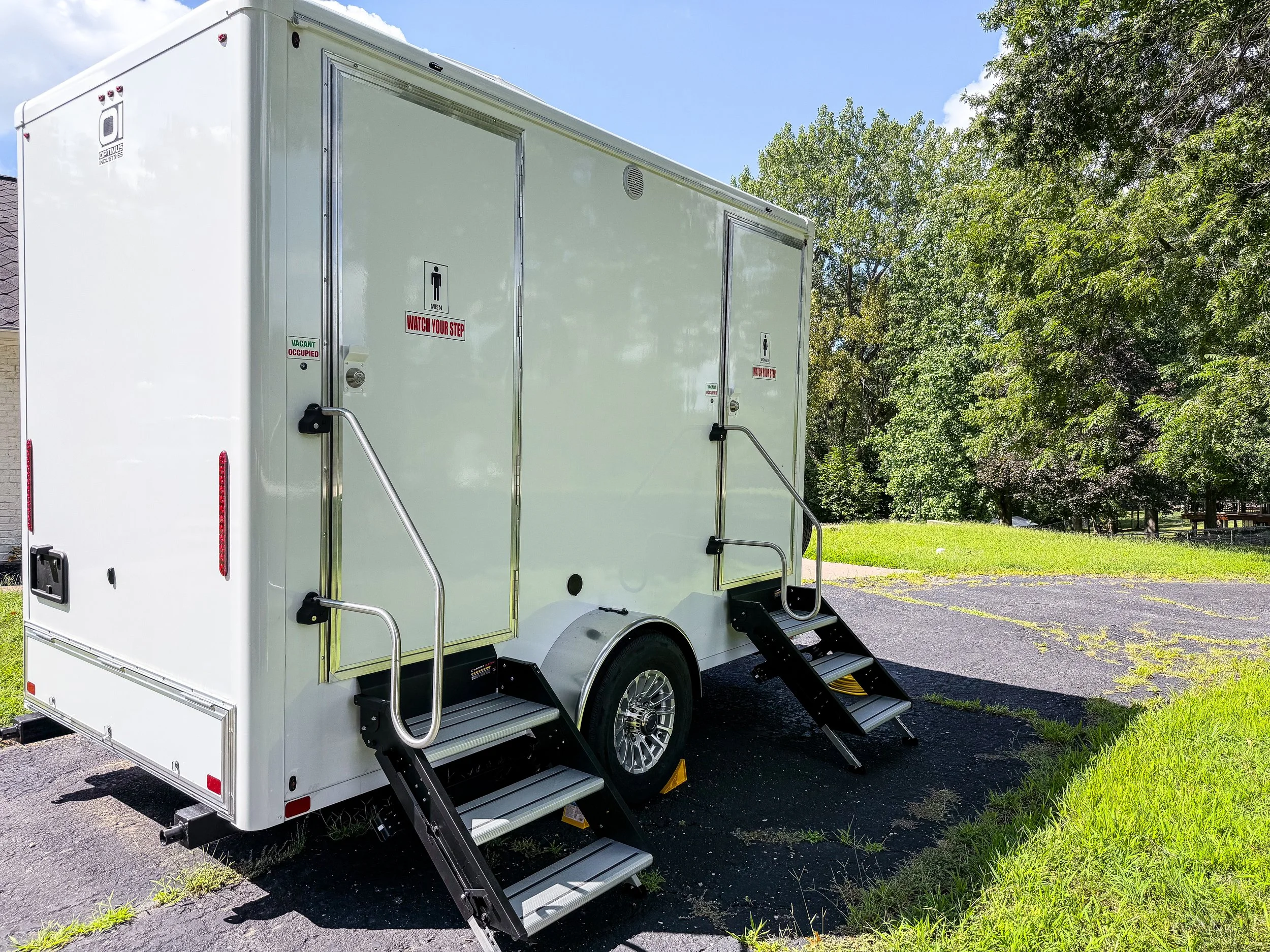 This 2-stall restroom trailer is great for smaller events, private parties, corporate events, or home remodel projects and is equipped with 2 private unisex stalls (one with a toilet + urinal).
